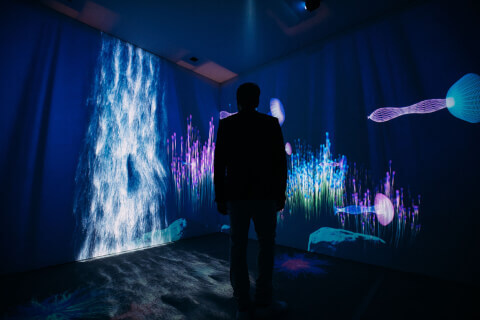 Sensoria is an immersive experience combining multi-projection, music and scent. The project is led by Vanessa Larue, founder of the Sensouvenir agency. V Vanessa Larue, founder and project leader Antonin Puau, CTO, oversees the technical aspects Anne-Lise Saive, neuroscientist, explores the links between memory and the senses, mediating between art and science. Pia Vidal, Artistic Director for image, writing and storyboarding, motion design Anaïs Fournial Perfumer, Aromachologist Kevin Cestele, sound & motion designer François ARRIVE, composer and sound designer. IO studio agency Walid Zarrad, industrial designer, co-created the technical design of the wood and aluminium cube Maxime Brison and Renaud Schmidt, carpenters, brought the wooden structure to life.